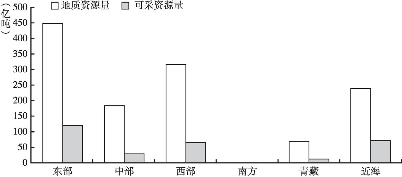 圖2 中國石油地質(zhì)資源量與可采資源量大區(qū)分布