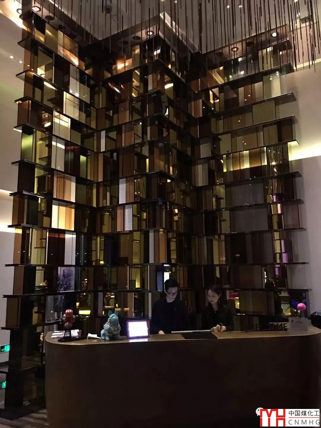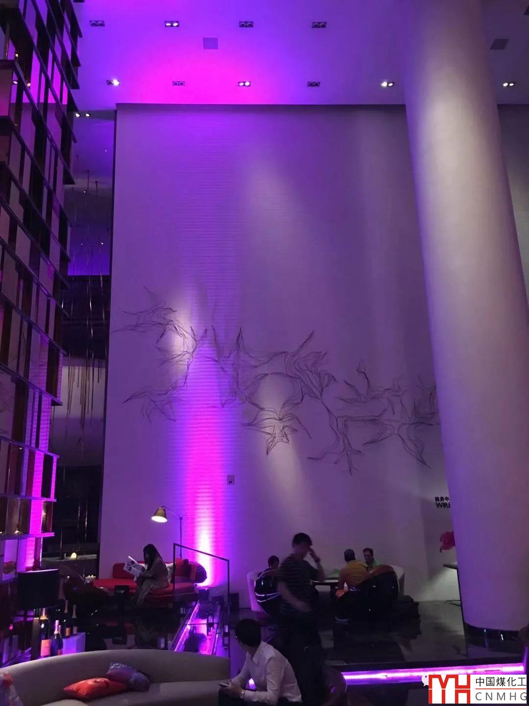 大堂的裝修風(fēng)格與大堂吧相同,是大堂吧的延續(xù)。但照明要樸素很多,彩色光比較收斂,畢竟是功能性場(chǎng)所。但是裝飾物的反射光也帶來(lái)不一樣的體驗(yàn)!