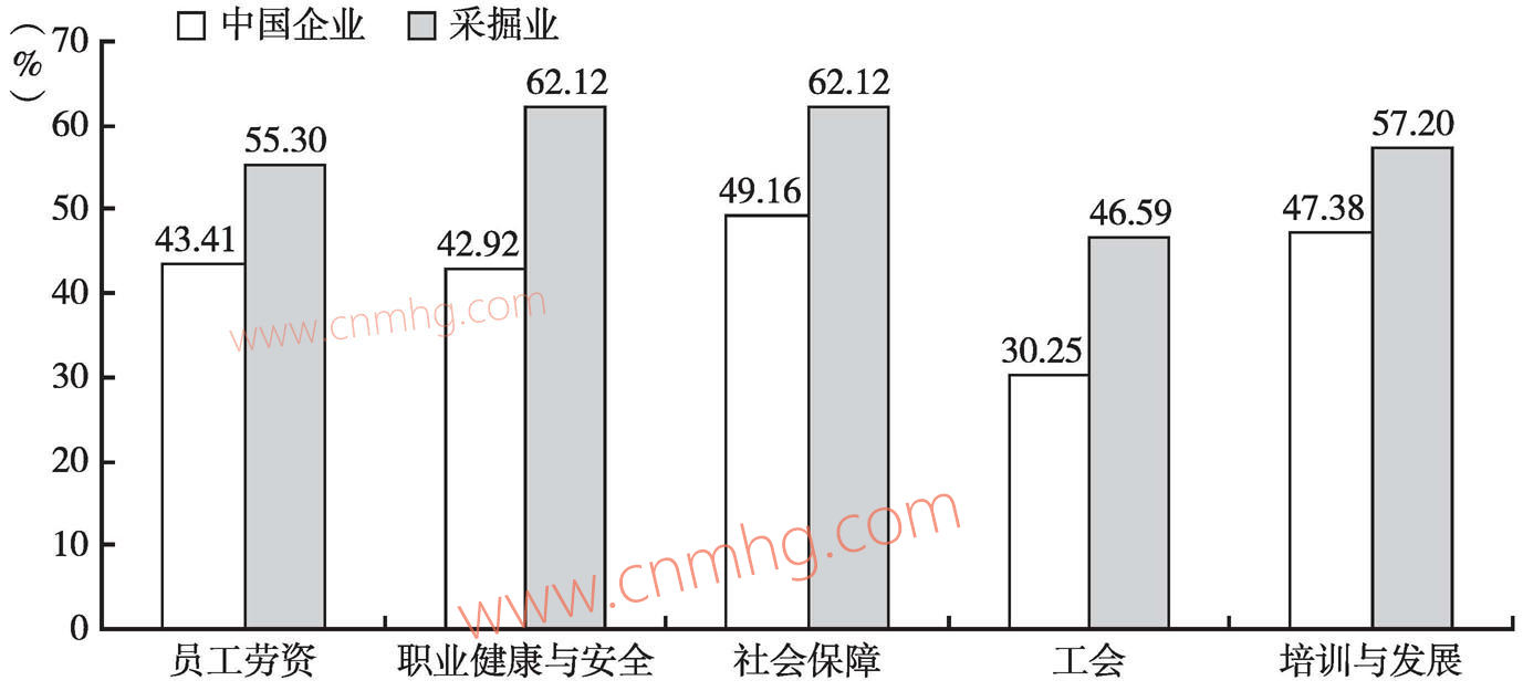 圖3 采掘業(yè)和中國企業(yè)報告六性得分率