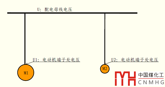 圖2所示,電動(dòng)機(jī)M1功率大,其啟動(dòng)時(shí)會(huì)造成其配電系統(tǒng)上電壓降低,這是正常現(xiàn)象,但電壓降低是有限度的,就是在M1啟動(dòng)過程中不能影響功率較小的電動(dòng)機(jī)M2正常工作。