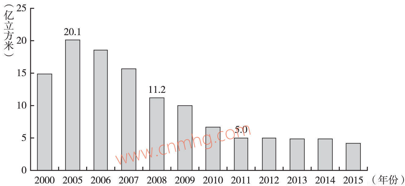 圖1 2000~2015年河南省天然氣產(chǎn)量變化