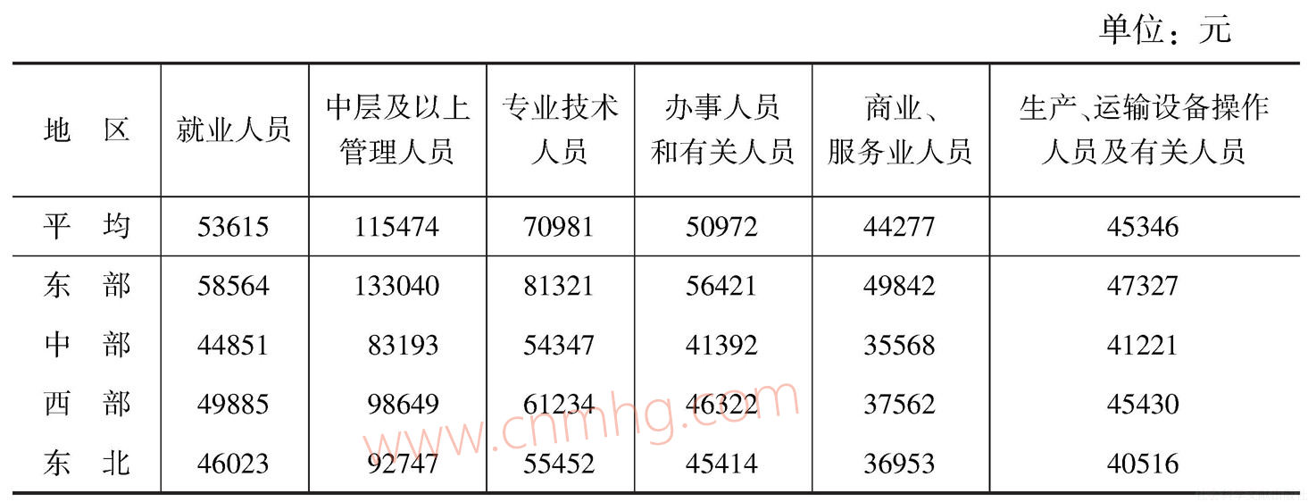 表6-4 分區(qū)域非私營(yíng)單位平均工資