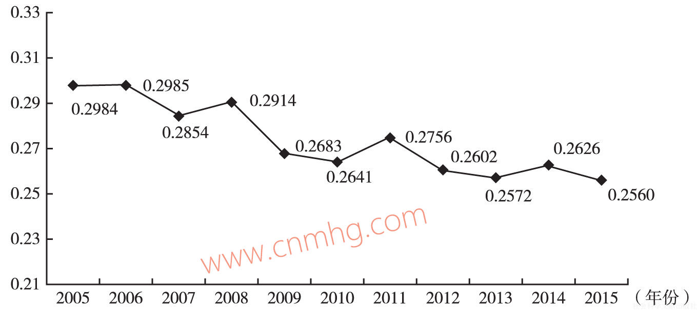 圖6-2 2005~2015年分地區(qū)平均工資變異系數(shù)