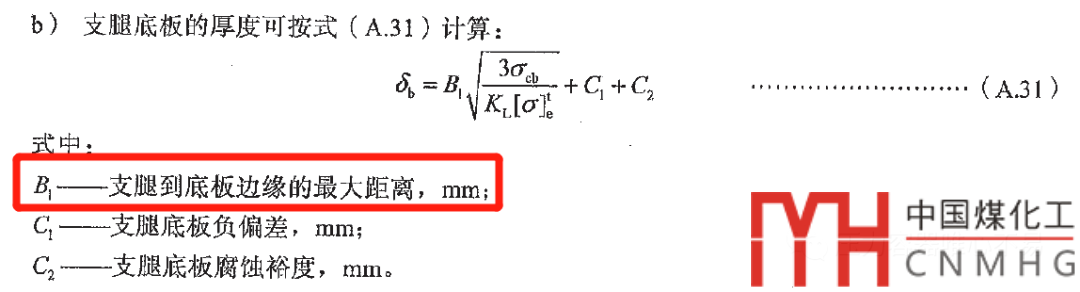 在Pressure vessel design manual一書以及NB/T 47065-2018中,對于支腿底板的計(jì)算公式基本相同。