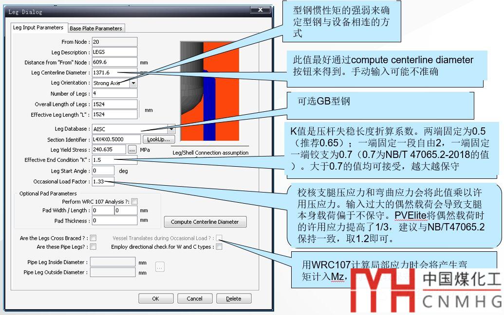 在做ASME設(shè)計(jì)時,經(jīng)常按照國標(biāo)的標(biāo)準(zhǔn)支腿尺寸來設(shè)計(jì),然后再在PVElite中校核計(jì)算。