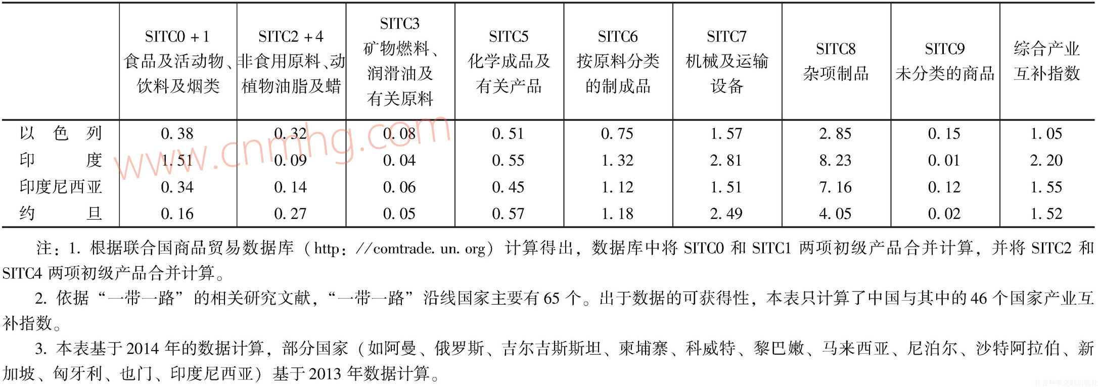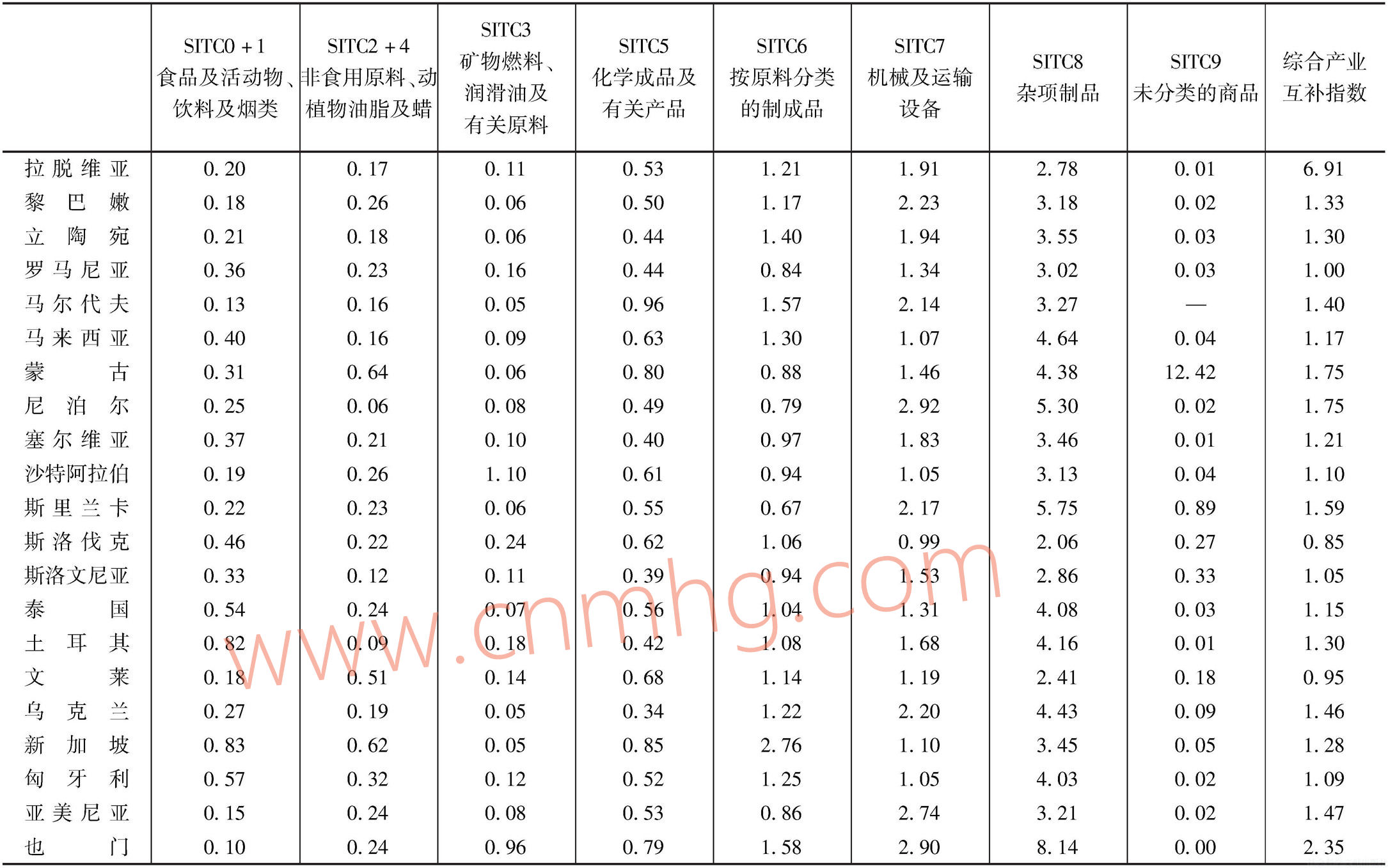 本處通過計算產(chǎn)業(yè)互補指數(shù)來挑選“十三五”期間中國與“一帶一路”沿線國家國際產(chǎn)能合作的重點地區(qū)和重點產(chǎn)業(yè)。