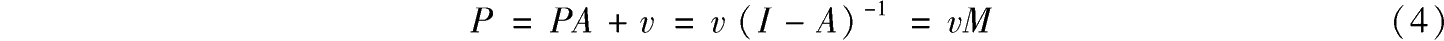 p=(p1,p2,p3)=(p11,p12,…,p1n1,p21,p22,…,p2n2,p31,p32,…,p3n3)是所有SAM矩陣中內(nèi)生部門的價格向量,記v=π4A(4),其中A(4)=(A41,A42,A43),