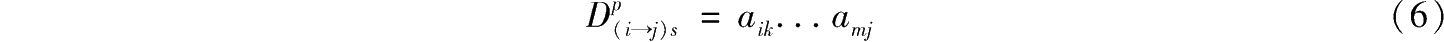 即,若第i部門的價格受到一個外生的沖擊,其對j部門產(chǎn)品價格的直接影響就是列標準化矩陣A中的元素(i,j)。價格傳遞模型是一個線性的結(jié)構(gòu),則部門i通過路徑s=〈i,k,l,...,m,j〉對部門j的直接影響就是相鄰賬戶之間直接影響的乘積: