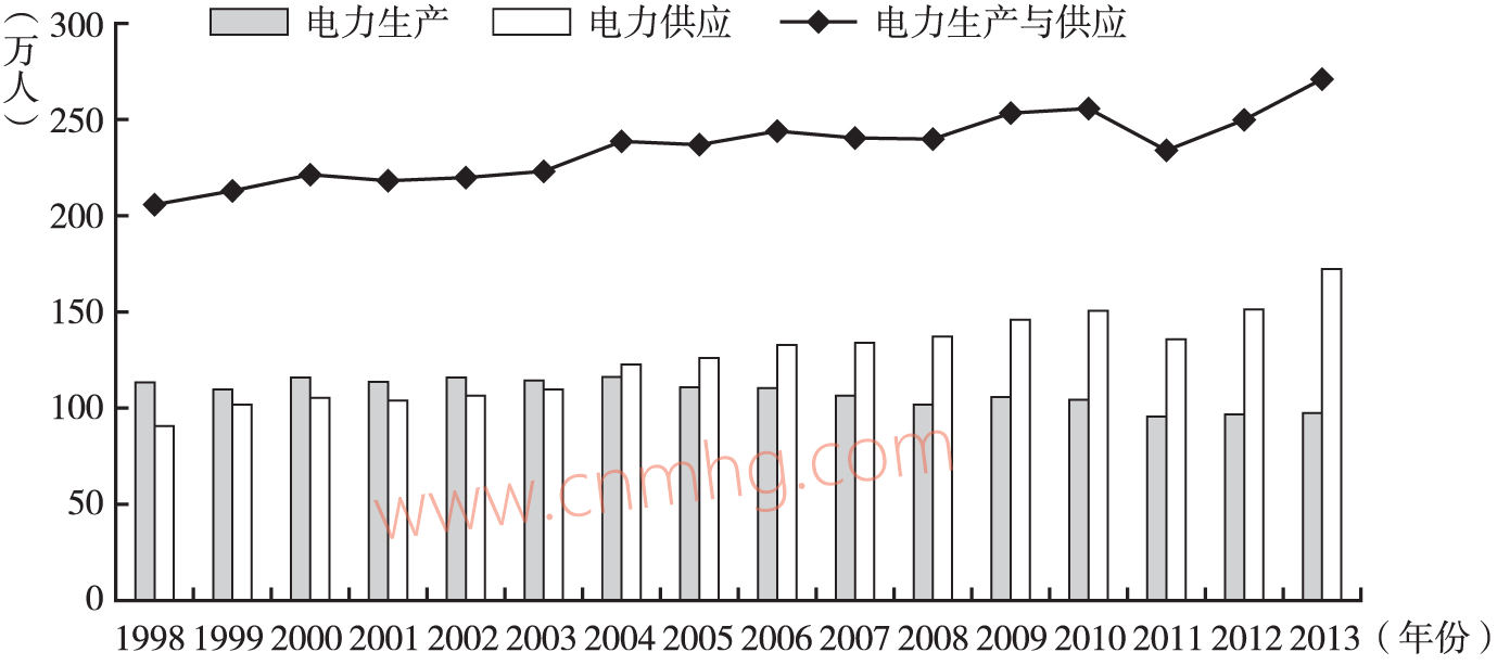 圖1 電力行業(yè)的就業(yè)增長情況(1998~2013年)