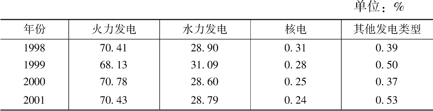 表1 1998~2011年不同電源發(fā)電部門就業(yè)總數(shù)在電力生產(chǎn)業(yè)中的占比情況變化趨勢