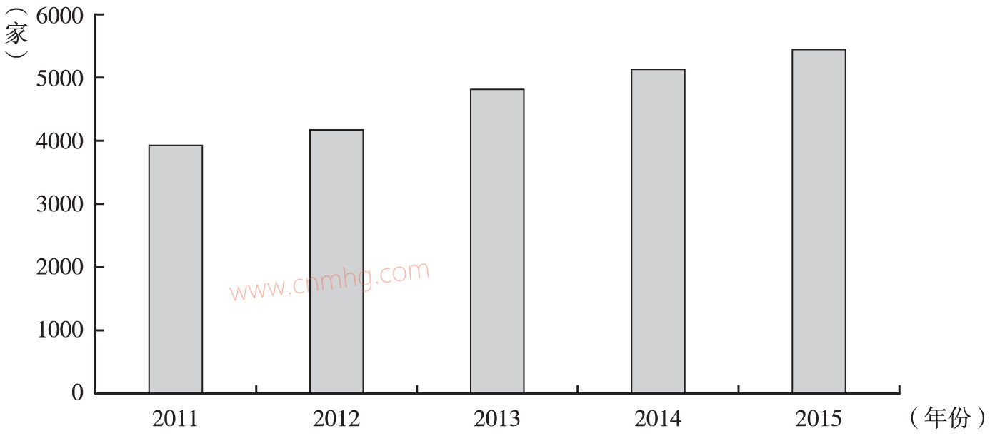 圖4 節(jié)能服務(wù)企業(yè)數(shù)量變化趨勢(2011~2015年)