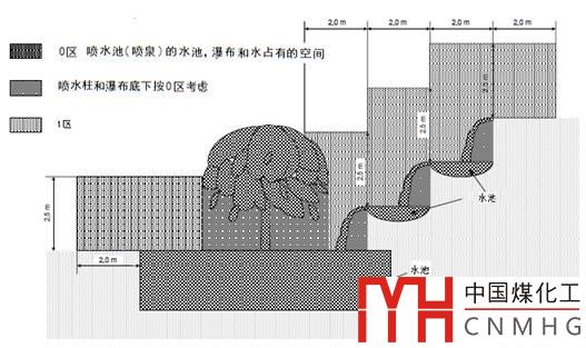 0區(qū)域——水池、水盆或噴水柱、人工瀑布的內(nèi)部。