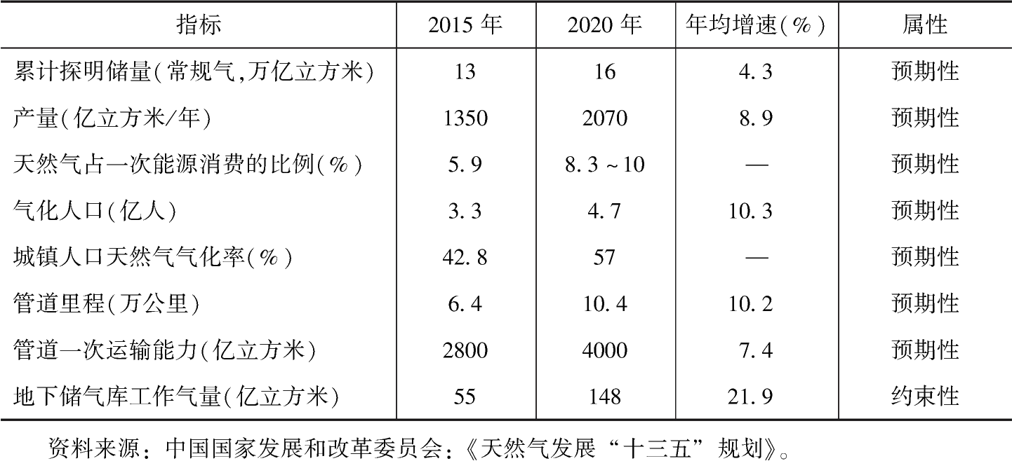 表1-2 “十三五”時(shí)期天然氣行業(yè)發(fā)展主要指標(biāo)