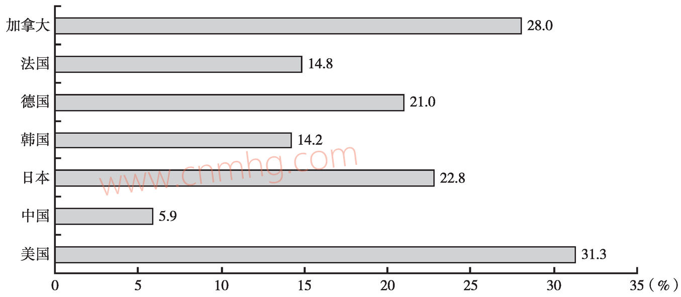 圖1-1 2015年世界主要經(jīng)濟(jì)體天然氣占一次能源消費(fèi)的比重