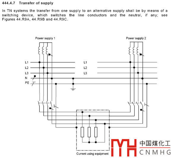 2 TN-C-S、TN-S系統(tǒng)中的電源轉(zhuǎn)換開關,應采用切斷相導體和中性導體的四極開關。