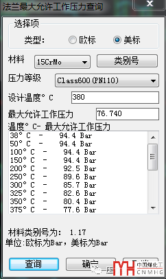 查詢一下380°C下15CrMo的的標(biāo)準(zhǔn)法蘭最大允許工作壓力為7.67MPa。