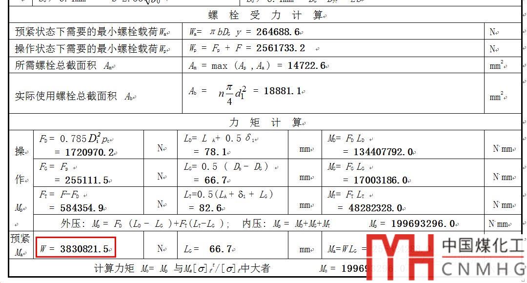 但是對(duì)于RJ面的墊片來說,由于比較大的螺栓載荷,會(huì)導(dǎo)致墊片壓潰的情況。檢查一下計(jì)算書的螺栓預(yù)緊力W=3830821.5N。