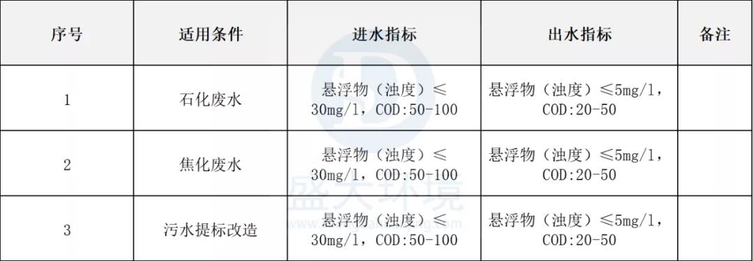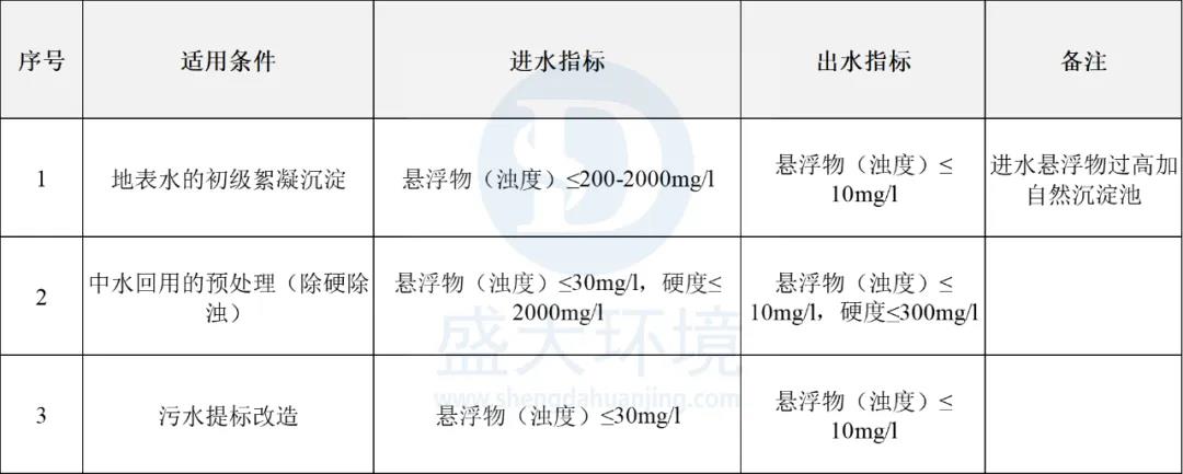 用于地表水的初級絮凝沉淀;生活污水及工業(yè)廢水的深度處理;中水回用的預(yù)處理(除硬除濁);污水提標(biāo)改造等處理單元。