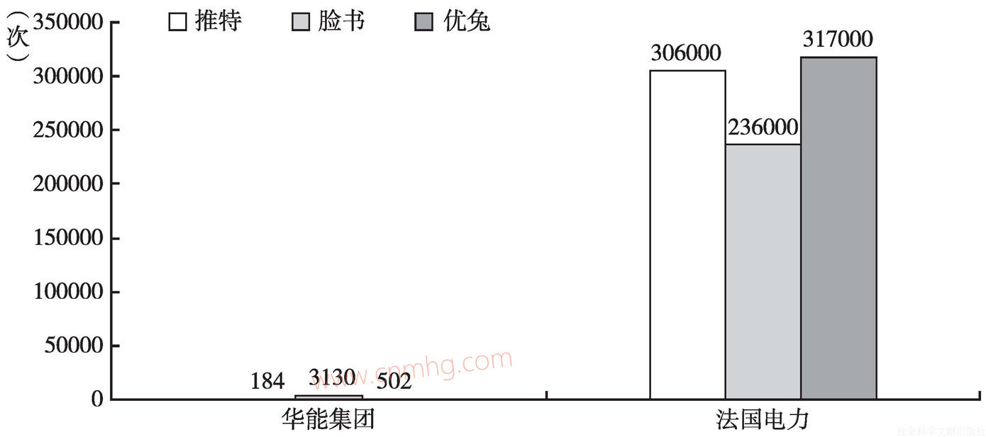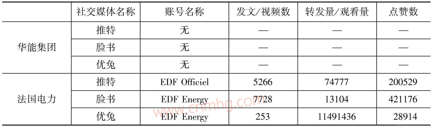 2.中國(guó)華能集團(tuán)與法國(guó)電力相比,在海外社交平臺(tái)中的傳播力較低