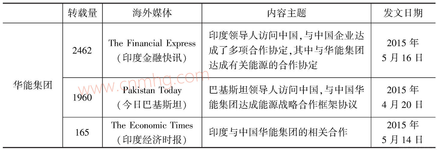 (2)從新聞報(bào)道的內(nèi)容主題上來(lái)看,華能集團(tuán)與法國(guó)電力公司在被報(bào)道的內(nèi)容主題上不存在明顯差異,海外媒體對(duì)兩家企業(yè)沒(méi)有明顯的態(tài)度傾向(見(jiàn)表2)。從華能集團(tuán)和法國(guó)電力集團(tuán)轉(zhuǎn)載量分別占據(jù)前三名的內(nèi)容主題看,都是企業(yè)自身與國(guó)外政府、企業(yè)展開(kāi)能源合作的相關(guān)內(nèi)容,都是從客觀事實(shí)出發(fā),不帶明顯的主觀色彩。但值得注意的是,盡管內(nèi)容主題不存在明顯差異,但占據(jù)轉(zhuǎn)載量前三位的媒體存在明顯的不同。對(duì)華能集團(tuán)進(jìn)行報(bào)道的三家媒體分別是《印度金融快訊》、《今日巴基斯坦》和《印度經(jīng)濟(jì)時(shí)報(bào)》,這三家媒體均屬于亞洲媒體,并且均不屬于發(fā)達(dá)國(guó)家。而對(duì)法國(guó)電力公司進(jìn)行報(bào)道的三家媒體分別是《加拿大國(guó)家郵政報(bào)》、《英國(guó)衛(wèi)報(bào)》和美國(guó)彭博社,這三家媒體均屬于歐美發(fā)達(dá)國(guó)家的媒體(見(jiàn)表2)。因此,可以看出,盡管?chē)?guó)外媒體對(duì)新聞報(bào)道的內(nèi)容無(wú)明顯差異,但華能集團(tuán)的影響力仍然局限于亞洲國(guó)家,而在歐美發(fā)達(dá)國(guó)家的傳播力依舊有所欠缺。