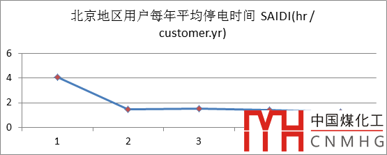 圖3北京地區(qū)用戶每年平均停電時間 SAIDI(hr / customer.yr)