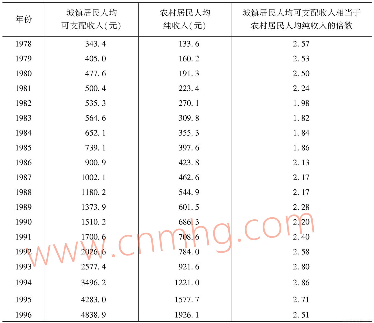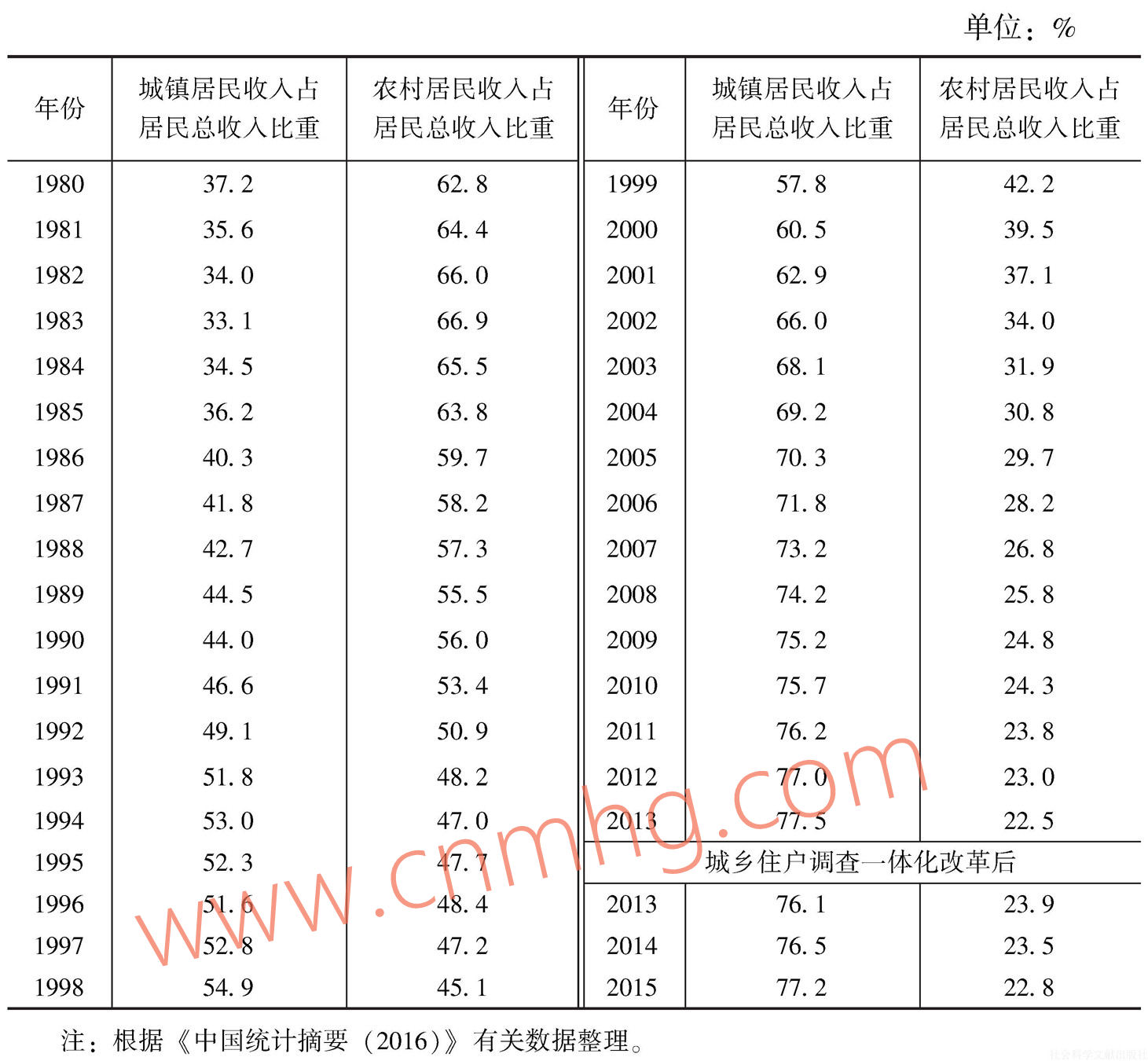 表1-4 居民收入的城鄉(xiāng)構(gòu)成比例