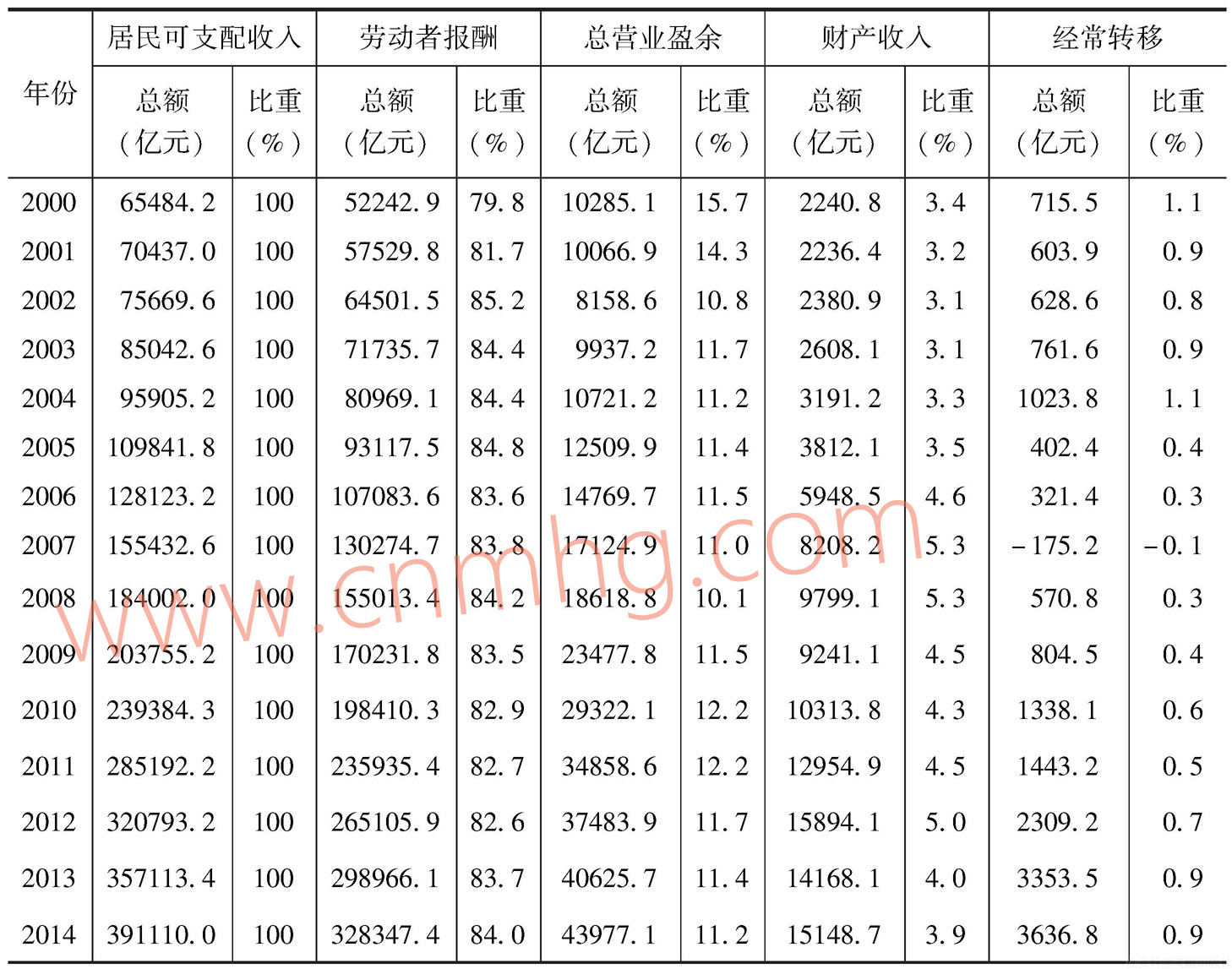 表1-3 2000~2014年居民收入來源構(gòu)成