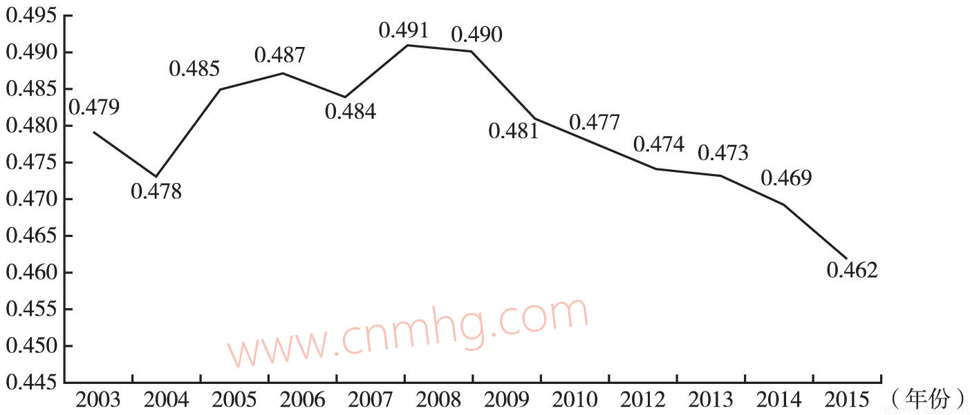 圖1-3 2003~2015年基尼系數(shù)走勢