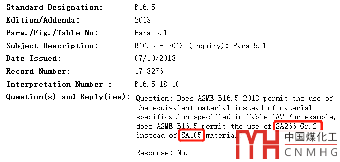 也就是說即使人們認(rèn)為SA266和SA105是基本等效的材料,但是未列到ASME B16.5中,那么就不能替換。