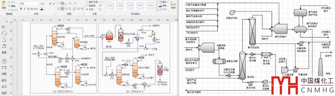 當(dāng)我們用Aspen模擬完流程之后,就可以用Visio來繪制流程框圖、生產(chǎn)技術(shù)路線圖、工藝流程圖,繪制好后可直接復(fù)制進(jìn)Word文檔以及PPT中。