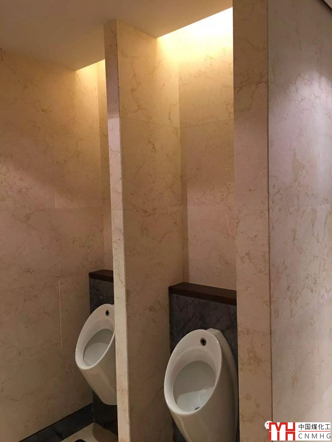 小便斗區(qū)域采用嵌入式LED燈與燈槽的組合,有基礎(chǔ)照明(頂部照明),也有局部照明(小便斗上方),光環(huán)境豐富且有層次。