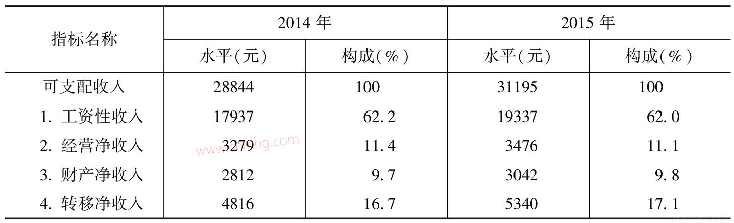 表3-2 2014~2015年城鎮(zhèn)居民人均可支配收入來源構(gòu)成