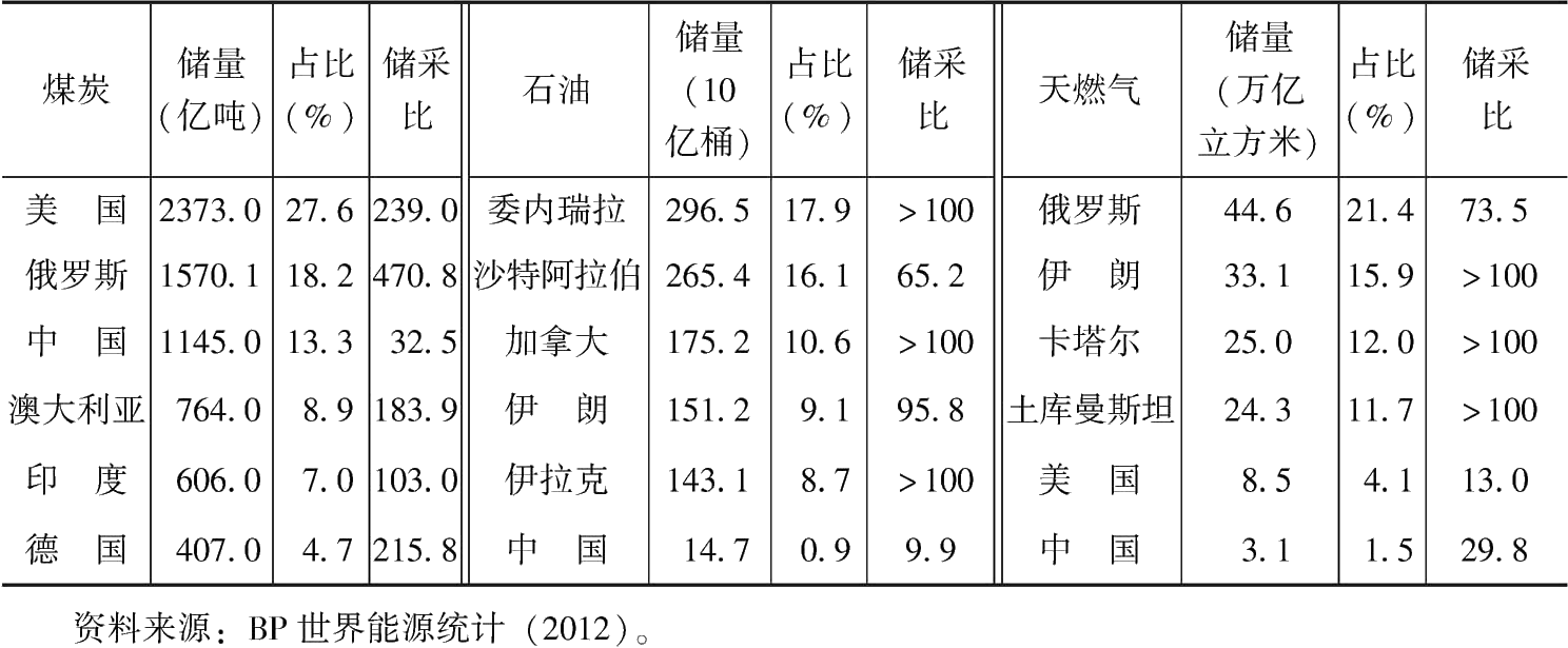 表4 主要能源生產(chǎn)國2011年能源產(chǎn)量