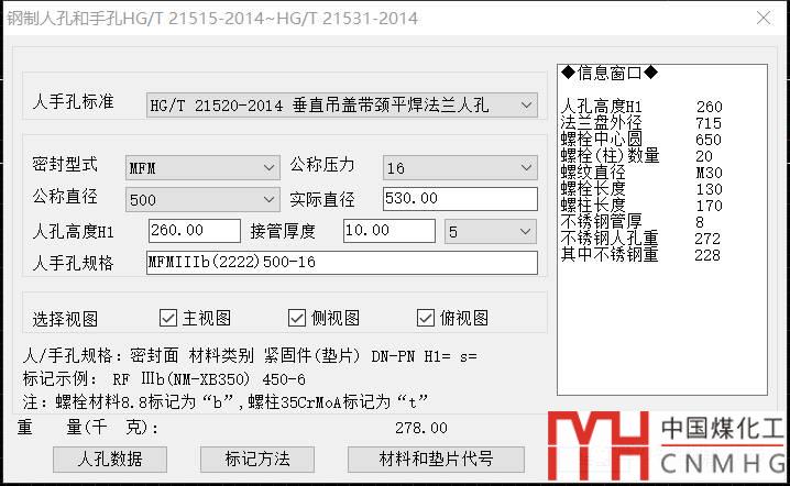 增加人孔規(guī)格的提示數據。包括人孔的數據,標記方法,材料和墊片代號。