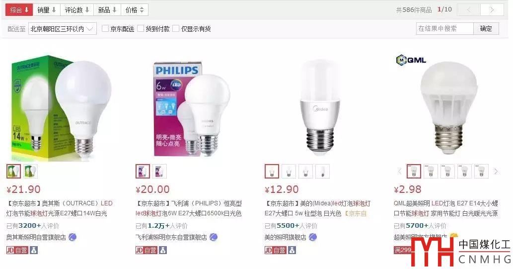圖1 LED球泡在京東網(wǎng)上價(jià)格差別較大