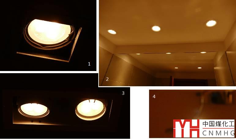 令人不解的是,客房衛(wèi)生間的5盞燈(圖2中的2圖所示)采用調(diào)光控制,而且是自動的,客人無法干預。目測亮度從50%~100%連續(xù)調(diào)光,周期約30秒。這樣設(shè)計不知從何考慮,雖然沒有明顯不適,但不知其中緣由!