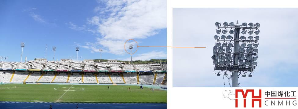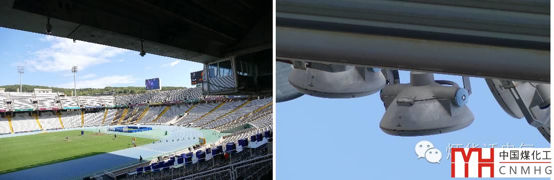體育照明的布燈方式與建筑一樣,也很怪異,東側(cè)5塔式布燈,西側(cè)光帶布燈,這種布燈很少見(jiàn)。燈具光源為傳統(tǒng)的金鹵燈,共有454套,按照現(xiàn)在奧運(yùn)會(huì)標(biāo)準(zhǔn),燈具數(shù)量明顯不足。