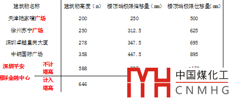 表2 部分超高層建筑極限偏移量