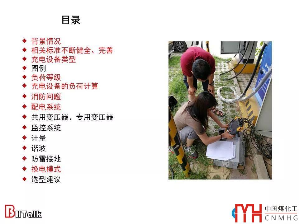 u背景情況u相關標準不斷健全、完善u充電設備類型u圖例u負荷等級u充電設備的負荷計算u消防問題u配電系統(tǒng)u共用變壓器、專用變壓器u監(jiān)控系統(tǒng)u計量u諧波u防雷接地u換電模式u選型建議。