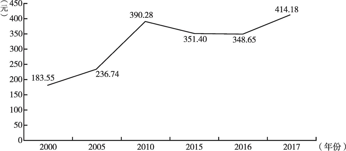 圖1 伊泰集團(tuán)2000~2017年噸煤生產(chǎn)成本