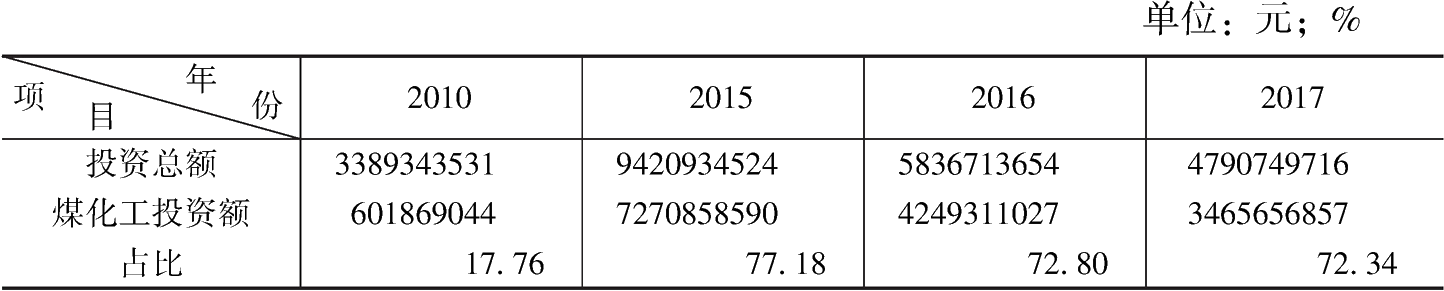 表1 伊泰集團(tuán)煤化工板塊投資占當(dāng)年總投資比重