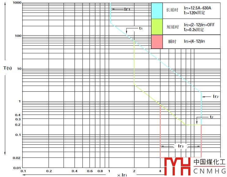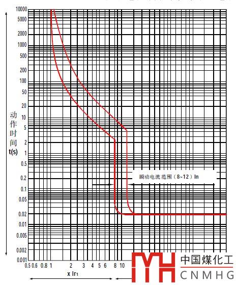 如圖1所示為典型的兩段式保護特性曲線。左側曲線為反時限的過載保護特性曲線;右側為直線,表示定時間的瞬時動作曲線,動作時間為0.02s。而圖2為某斷路器三段式保護特性曲線。