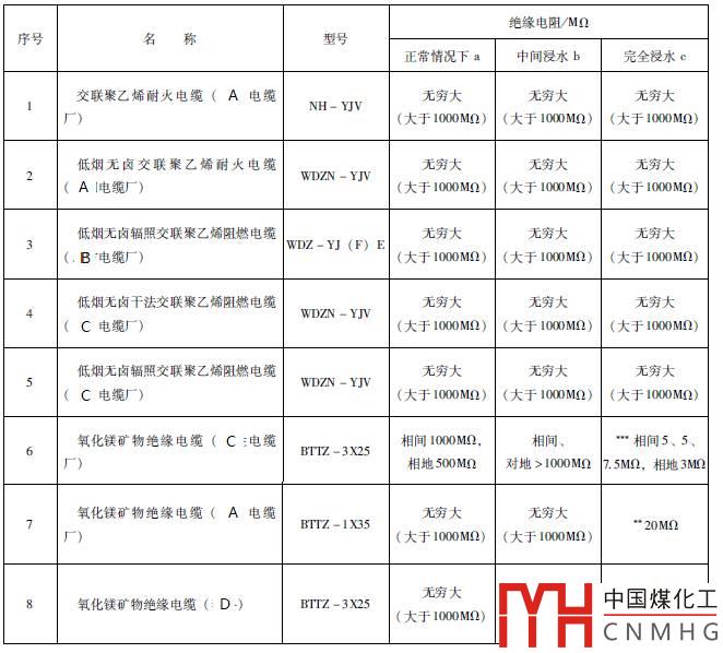 按照第四部分進行試驗,電纜中間浸泡后,其絕緣電阻應(yīng)不低于2MΩ,否則判定為不滿足防潮要求,不能在國家體育場工程中使用。