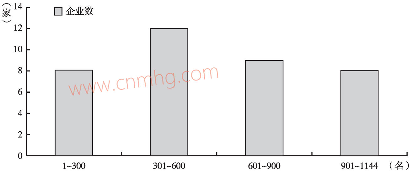 圖4-1 采掘業(yè)企業(yè)基礎(chǔ)競爭力排名分布情況