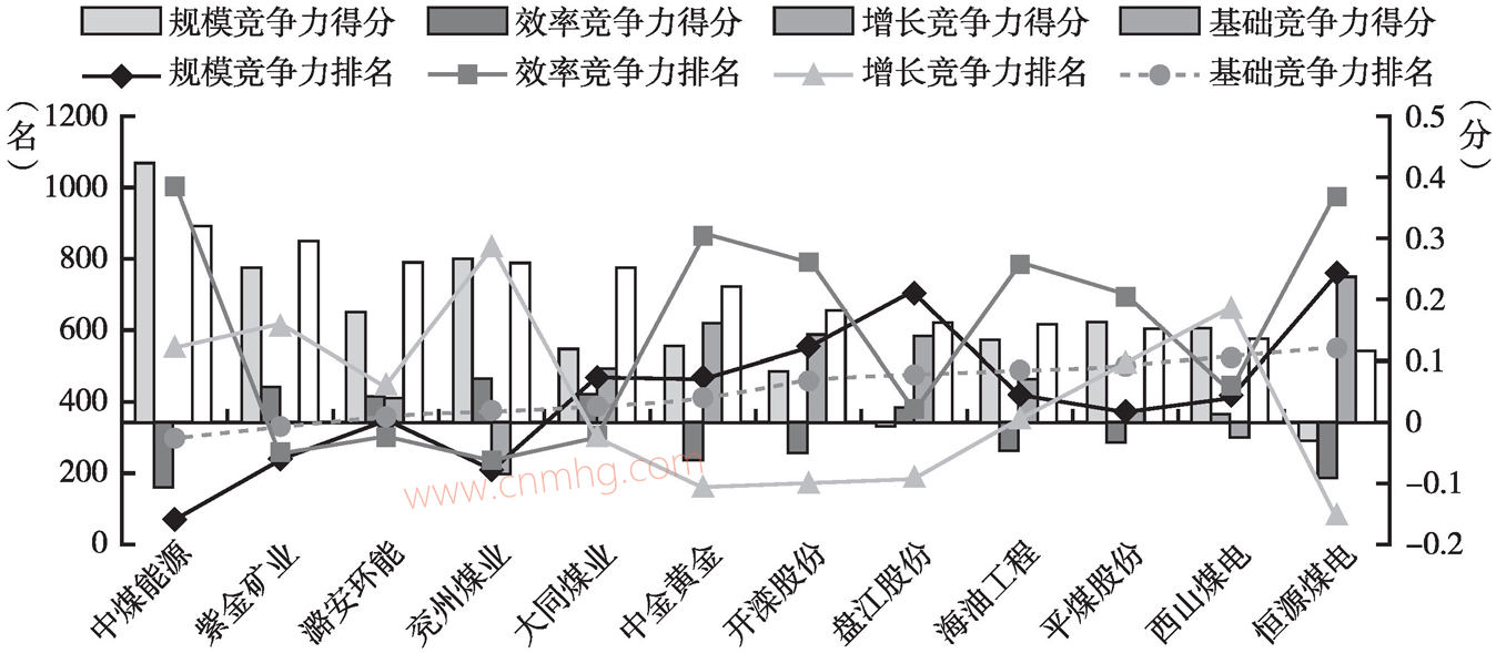 圖4-6 采掘業(yè)上市企業(yè)綜合競爭力得分及全行業(yè)排名