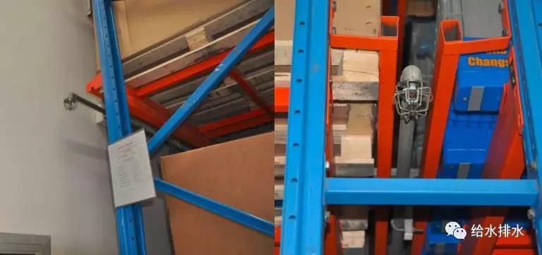 貨架內(nèi)噴頭的設(shè)置除了與凈空高度和儲(chǔ)物高度有關(guān)外,還取決于頂板層噴頭的選型以及貨架內(nèi)部是否有實(shí)層擋板,如果貨架內(nèi)有實(shí)層擋板,則實(shí)層擋板會(huì)嚴(yán)重阻擋頂板層噴頭的噴水,因此應(yīng)在每層實(shí)層擋板的下方均設(shè)置貨架內(nèi)噴頭。