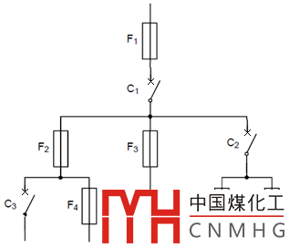 上級熔斷器、下級斷路器之間的保護(hù)選擇性配合可以通過使用時間-電流特性和I2t值或通過試驗進(jìn)行驗證。如圖1所示,斷路器C3與熔斷器F2的配合就是這樣的保護(hù)配合。