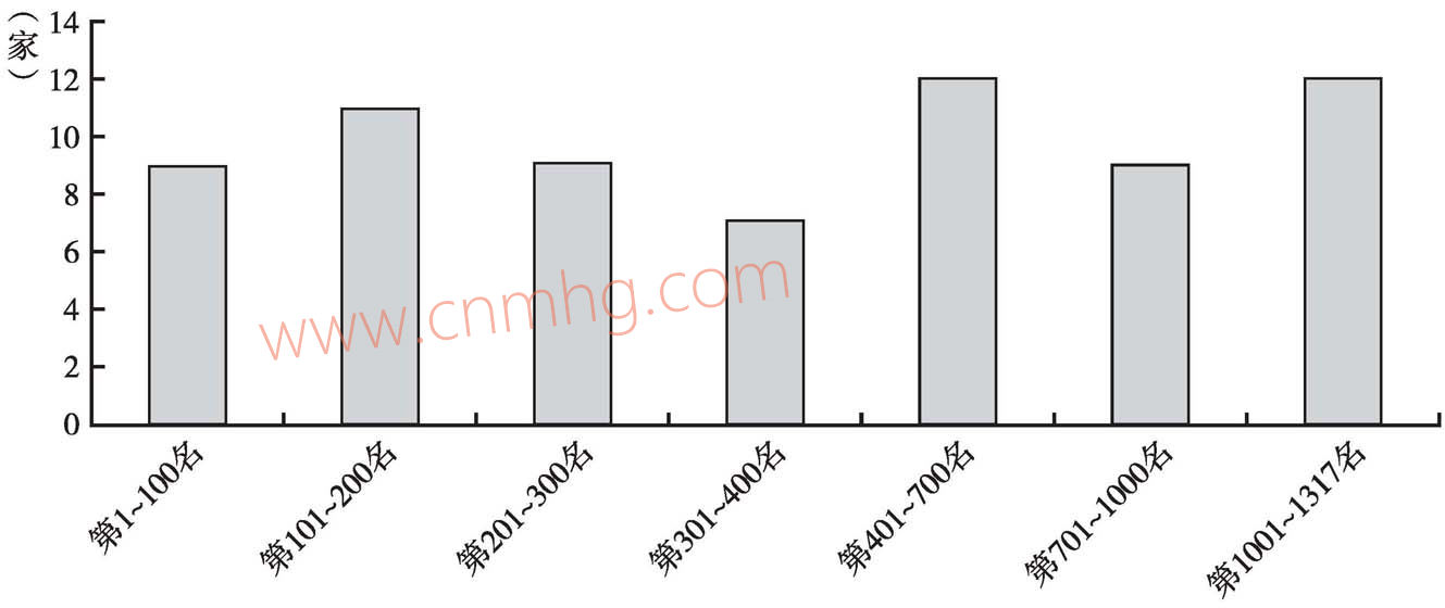 圖4-1 2009年采掘與冶煉行業(yè)企業(yè)基礎(chǔ)競爭力排名分布