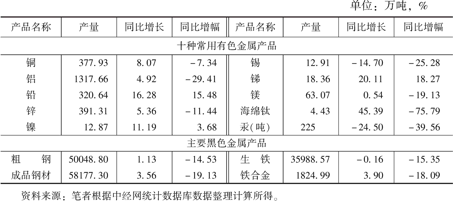 (二)采掘與冶煉行業(yè)主要產(chǎn)品產(chǎn)量持續(xù)增長,但增幅大多回落