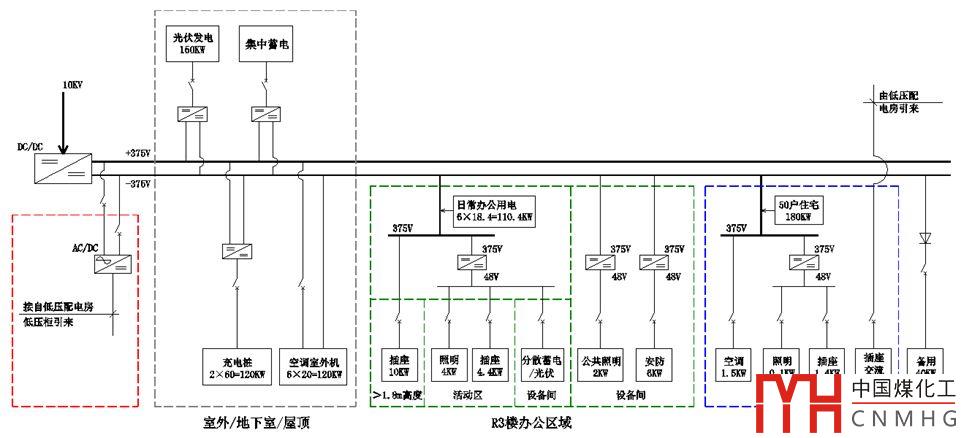 該直流配電示范樓總建筑面積62523m2,建筑高度近100m,集研發(fā)、辦公、實驗、展覽、教育、文化交流等功能于一體,2路10kV直流電源供電,僅直流電源供電就令人驚訝,表明當?shù)仉娏疽苍谥绷鞴╇姺矫孀鎏剿餍匝芯?,并積累了一些成果。